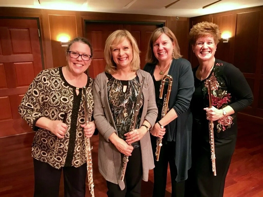 Flute4 is a team of Carolina-based flutists bonded by friendship, a common enthusiasm for the flute, and a desire to explore and commission flute repertoire within a professional setting. Exploring this music with friends is full of personal rewards, but also contributes to the work within our teaching studios, and renewed excitement for chamber works for flutes. Though the relationships span a few decades, the ensemble formed in 2017, and has appeared at the 2018 National Flute Association convention performing the World Premiere of Thomas McColley’s Behind the Eye. Since then, Flute4 has enjoyed presenting a variety of recitals and masterclasses, and developing new collaborations. Our members are active teachers and perform with orchestras throughout the Carolinas.